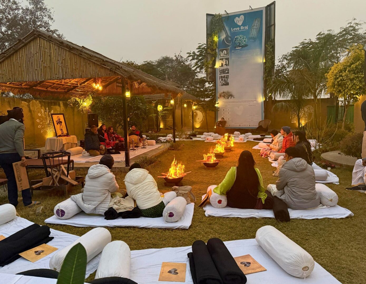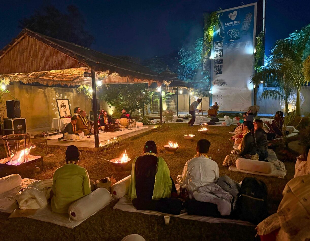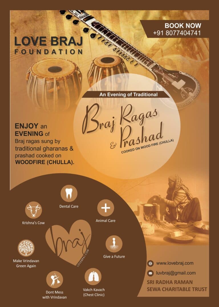 Experience classical Braj raag glorifying The Lord, sung by traditional Braj gharanas, along with authentic Braj food, in form of prashad, cooked on wood fire (chulla) and served in rural setting. This initiative endeavors to preserve, revive, and showcase authentic Braj classical ragas and culture.